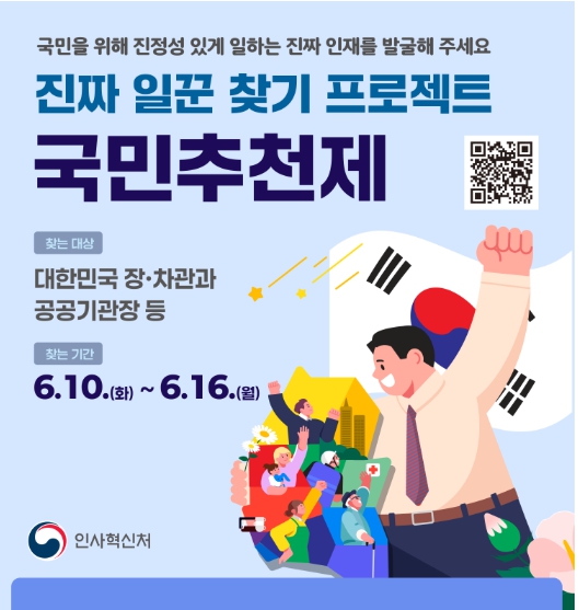 이 글을 통해 고위공직자 국민추천제에 대한 이해가 깊어지셨기를 바랍니다. 나와 내 주변에 있는 훌륭한 인재가 공직으로 나아갈 수 있도록 지금 바로 국민추천제 참여를 고려해보는 것은 어떨까요?