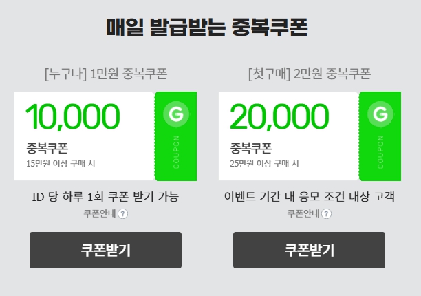 - 추가 할인 쿠폰: G마켓 자체 할인 쿠폰과 중복 사용 가능