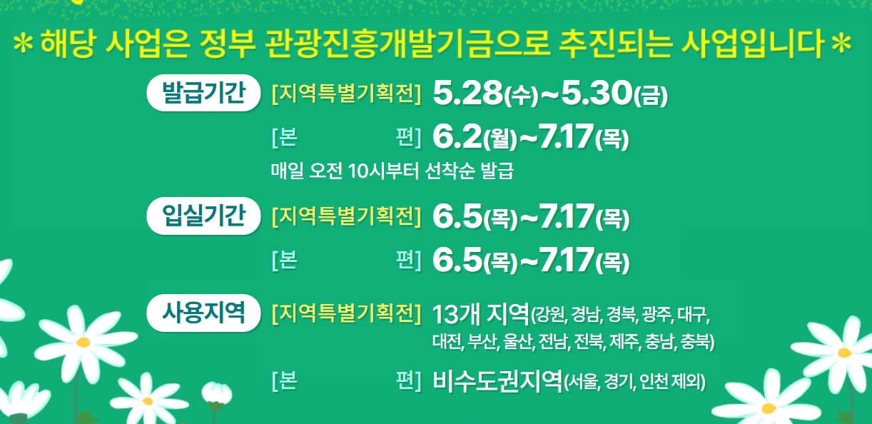 문화체육관광부와 한국관광공사가 공동 주최하는 이 행사는 국내 관광 활성화를 위해 마련된 대규모 할인 캠페인입니다. 전국 숙박업체, 여행 플랫폼, 카드사까지 모두 참여해 숙박비 부담을 확 줄일 수 있는 절호의 기회입니다.
