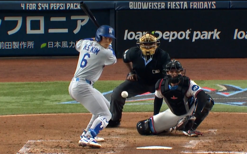 타격 측면에서는 공을 끝까지 보는 능력과 2스트라이크 이후에도 컨택을 해내는 기술이 인상적입니다. 실제로 김혜성은 48타석 기준 삼진율이 12.5%로 리그 평균(약 22%)보다 낮으며, 출루율 .458로 탁월한 선구안을 보여주고 있습니다.